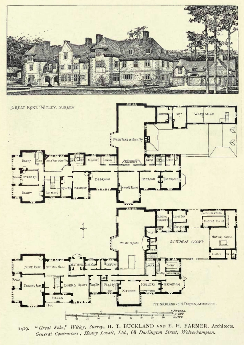 Newly constructed house, before Gertrude Jekyll's landscaping. The photos of the family rooms are particularly